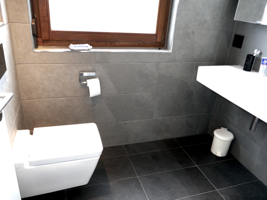 Ein neues WC im UG, ein neues Tageslichtbad m. großer Dusche, Waschbecken & WC im OG.